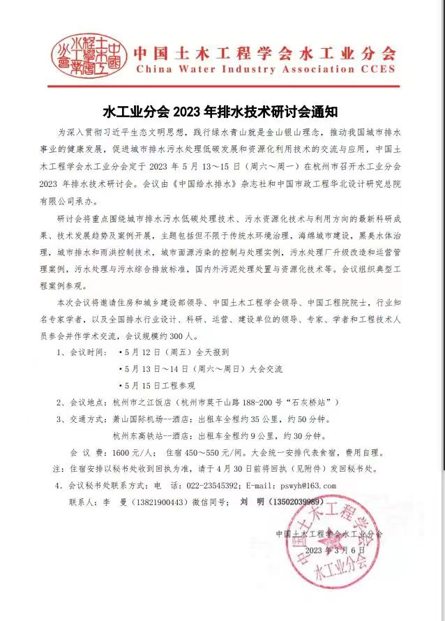 當前位置:首頁 > 展會信息 > 水工業分會 2023 年排水技術研討會通知