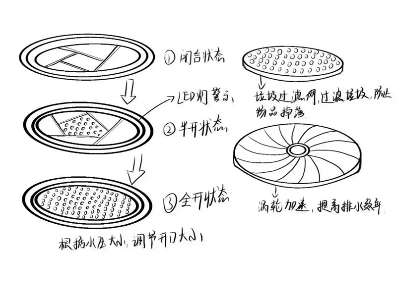 《智雨安行》以前瞻性思維為智慧城市建設(shè)中的城市排水難題提供了創(chuàng)新解決方案。該設(shè)計(jì)從井蓋材質(zhì)、排水技術(shù)及相關(guān)電子傳感技術(shù)入手,突破性地將機(jī)械結(jié)構(gòu)與電子傳感技術(shù)融合,提出“可變孔徑”設(shè)計(jì)理念。該設(shè)計(jì)使井蓋開口能根據(jù)實(shí)際水壓自動(dòng)調(diào)節(jié)大小,靈活應(yīng)對(duì)不同強(qiáng)度降雨;同時(shí)集成LED警示環(huán)與安全傳感器,實(shí)時(shí)監(jiān)測(cè)井蓋狀態(tài),異常時(shí)立即預(yù)警,構(gòu)建起真正“會(huì)思考”的排水系統(tǒng)。“讓城市即使在極端天氣下仍保持‘呼吸’暢通”,在潘一博的設(shè)計(jì)構(gòu)想中,井蓋是能感知環(huán)境變化、自主響應(yīng)的“智能衛(wèi)士”,同時(shí)滿足排水效率與公共安全雙重需求。