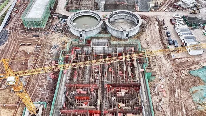 截至目前,項(xiàng)目主體結(jié)構(gòu)已完成80%。據(jù)現(xiàn)場(chǎng)負(fù)責(zé)人陳滿介紹,粗格柵基坑開挖即將結(jié)束,反硝化濾池基礎(chǔ)已完工;二沉池、加藥間、配電室主體結(jié)構(gòu)全部完成,生化池主體施工也接近尾聲。接下來,項(xiàng)目將進(jìn)入防水檢測(cè)試驗(yàn)階段,并同步啟動(dòng)設(shè)備安裝工作。