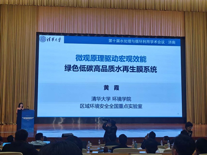 大會特邀報告環節由清華大學文湘華教授主持,多位院士及行業領軍專家帶來重磅分享。中國科學院生態環境研究中心曲久輝院士深入解析了氫鍵在水體系中的作用機制,提出從微觀調控實現水處理高效低碳的新思路;中國科學技術大學俞漢青院士聚焦雙氧水綠色制備與應用,倡導發展原位制備技術以提升水處理安全與效率;清華大學黃霞教授則從膜材料、工藝優化等維度,闡述了微觀機制驅動膜系統效能提升的實踐路徑。